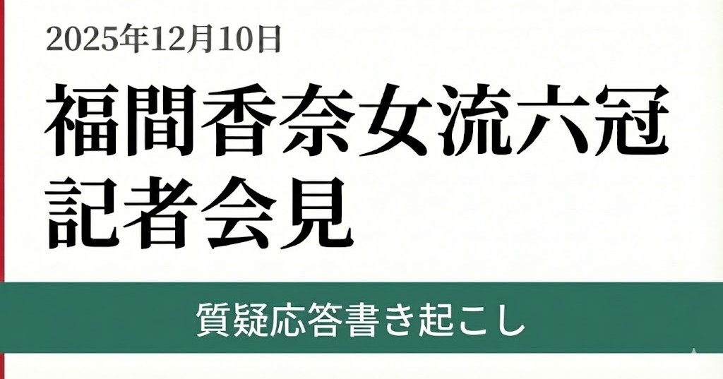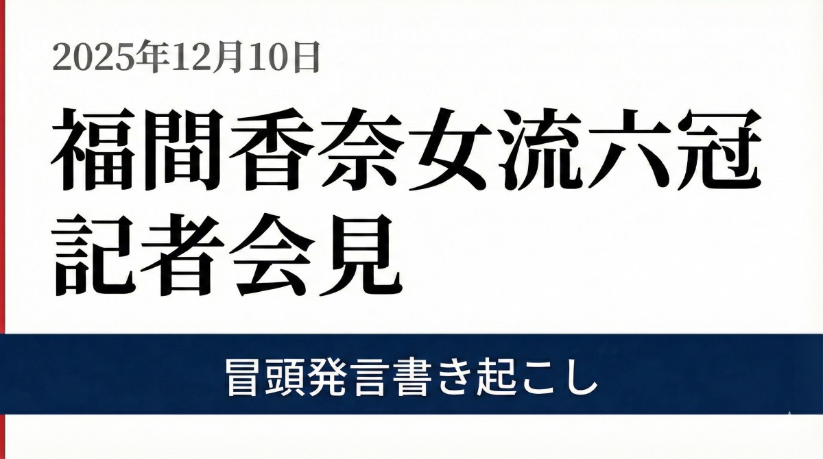 福間香奈女流六冠、記者会見(冒頭発言 書き起こし)